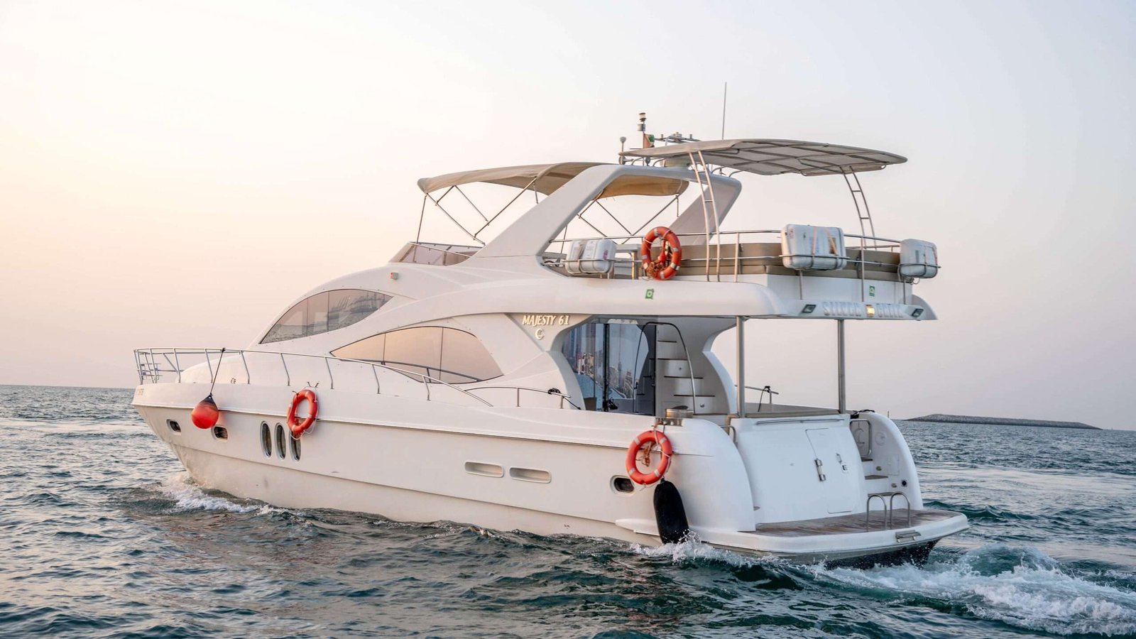 Charter the Silver Creek with The Anchors and experience the ultimate luxury yacht charter in Dubai. Cruise in style with up to 30 guests and enjoy the breathtaking views of the city. Our team of highly-attentive staff, including a captain and two crew members, will ensure that your experience is unforgettable. With a retro style and impressive speed of 26 knots, the 61 Ft Silver creek is the perfect choice for a sophisticated and magical cruise on the Dubai waters. Book now and let us take care of the rest.